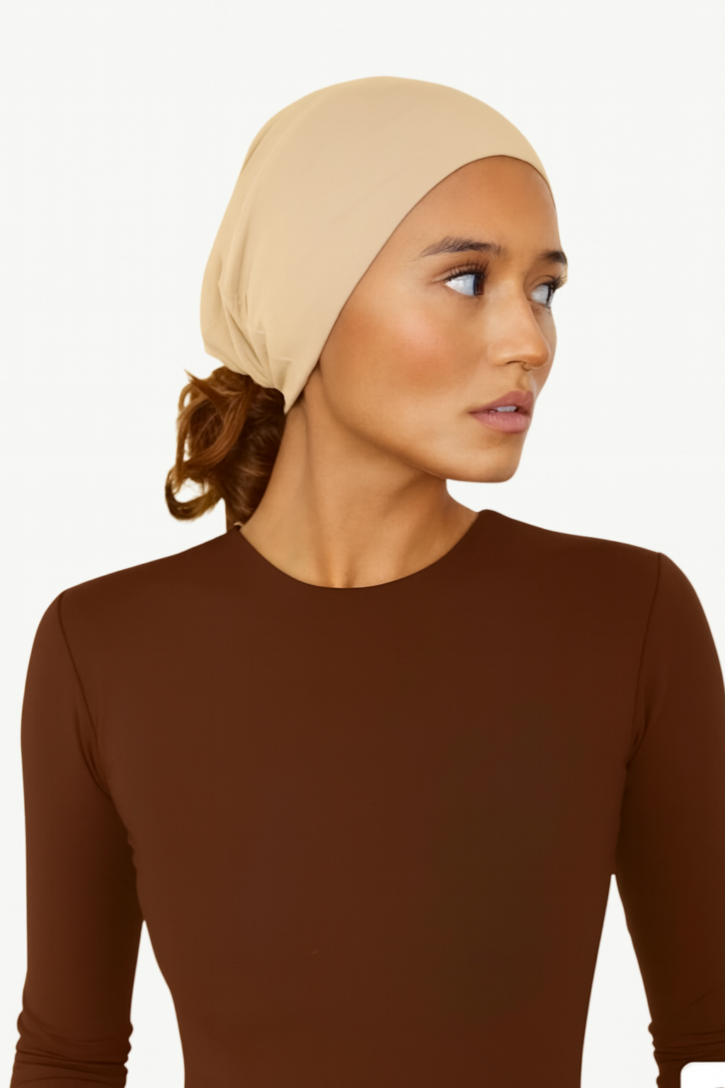 Der atmungsaktive, federleichte Stoff ist besonders sanft zur Haut und sorgt für ein angenehmes Tragegefühl, selbst an warmen Tagen. Durch den leichten Stretch sitzt das Bonnet sicher und unauffällig unter dem Hijab, ganz ohne Druck oder Verrutschen.